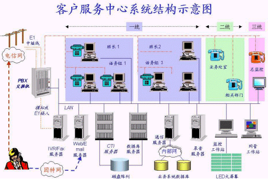 電力客戶服務中心以CTI技術為基礎,電力后臺應用系統(tǒng)為支撐,其他系統(tǒng)為輔助,各系統(tǒng)間數(shù)據(jù)共享,強化各部門之間的無縫銜接,形成一條龍的服務格局,“快速、準確、方便”地為客戶提供服務,向國際水平接軌。
