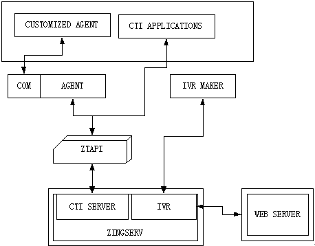 ZINGSERV呼叫中心平臺(tái)封裝了高智能的PABX功能和呼叫中心IVR、ACD特性,同時(shí)集成了CTI Server、系統(tǒng)設(shè)置功能。ZINGSERV提供的開(kāi)發(fā)接口包括IVR生成器和ZTAPI(Zinglabs Telephony Application Program Interface),Agent軟件和Monitor軟件就是利用ZTAPI開(kāi)發(fā)出來(lái)的。