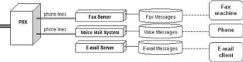 現(xiàn)在,幾乎是所有的企業(yè)都按照媒體的不同,用語(yǔ)音郵件系統(tǒng)處理語(yǔ)音消息、用傳真服務(wù)器處理把傳真,服務(wù)器是唯一的管理方法,這在大多數(shù)人看來(lái)似乎是理所當(dāng)然的。