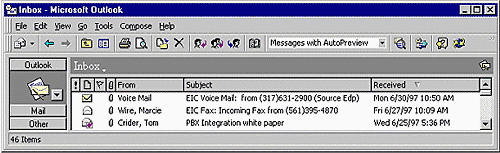 各種形態(tài)的大量的消息不斷涌來(lái),僅僅是對(duì)這么大量的電子郵件、語(yǔ)音郵件、傳真、其它消息等進(jìn)行檢查和存取就已經(jīng)很令人厭煩了,理想的做法是能在一個(gè)地方對(duì)所有的消息做出檢查。在僅有紙張的時(shí)代,這一個(gè)地點(diǎn)只能是辦公桌上的信箱,而現(xiàn)在,對(duì)應(yīng)的則是PC機(jī)中的電子“收信箱”。