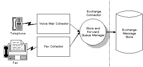 統(tǒng)一消息系統(tǒng)中很容易被忽視的1個(gè)重要要素就是容錯(cuò)。如果運(yùn)行Microsoft Exchange的服務(wù)器出現(xiàn)停機(jī)、網(wǎng)絡(luò)癱瘓,會(huì)怎樣呢?傳真會(huì)丟失、發(fā)信人無(wú)法留下語(yǔ)音消息。為了提供真正的統(tǒng)一消息,系統(tǒng)必須與諸如Microsoft Exchange這樣的被廣泛使用的電子郵件系統(tǒng)緊密鏈接。但是,如果鏈接得太過(guò)緊密,Exchange停機(jī) 時(shí),系統(tǒng)就會(huì)無(wú)法接收傳真或語(yǔ)音郵件消息。我們來(lái)看一下下面的圖。