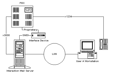 Interaction Mail可以與主流PBX和Centrex集成,因此可以提供傳統(tǒng)的單一目的的語(yǔ)音郵件系統(tǒng)的所具有的全部功能以及其它很多功能。這是通過(guò)使用簡(jiǎn)易型消息桌面接口(SMDI)協(xié)議來(lái)執(zhí)行的。SMDI接口本來(lái)是為了語(yǔ)音郵件系統(tǒng)和Centrex的集成而開(kāi)發(fā)的,可以應(yīng)用于Lucent、Nortel、Siemens、NEC、Mitel、Ericsson等PBX。