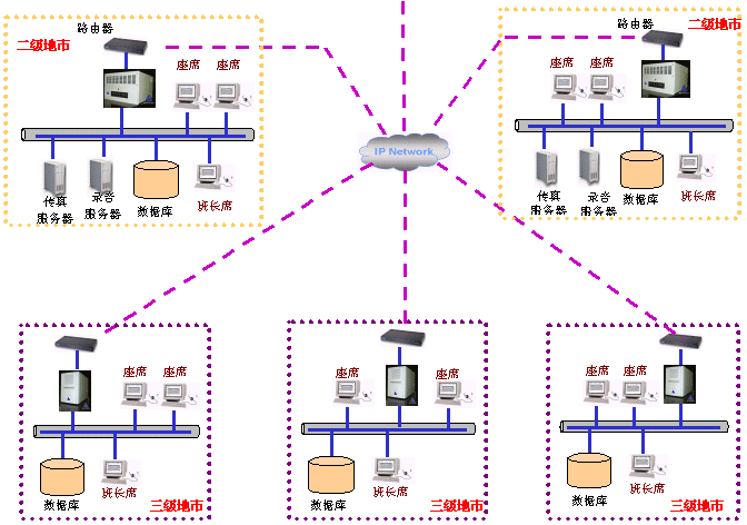 各地政府的呼叫中心如果各自獨(dú)立,那對整個(gè)客戶服務(wù)中心而言是極大的資源浪費(fèi)。奧迪堅(jiān)的呼叫中心平臺(tái)就可以利用VoIP技術(shù)提供分布式呼叫中心或集中式呼叫中心,真正做到資源(數(shù)據(jù)、語音、座席)的共享,并且將極大的降低系統(tǒng)通訊費(fèi)用和效率。奧迪堅(jiān)基于IP的一體化呼叫中心提供先進(jìn)高效的分布式呼叫中心的組網(wǎng)。組網(wǎng)圖如下: