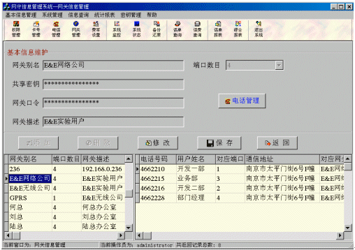 EEGK 8006網(wǎng)閘工作在Windows2000/Windows NT4.0操作系統(tǒng)上,數(shù)據(jù)庫系統(tǒng)采用微軟公司的SQL Server2000。該型號除了具備EEGK 8003網(wǎng)閘的全部功能外,增加了RADIUS協(xié)議的內(nèi)容。主要功能包括:接入認證、計費、結(jié)算,話費查詢、統(tǒng)計、報表、打印,通話費率設(shè)置,系統(tǒng)狀態(tài)監(jiān)控,用戶信息記錄、存儲、管理和查看等。
