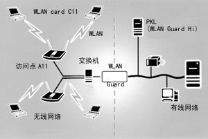 WLAN Guard是無線網(wǎng)絡(luò)中的安全設(shè)備。它保護著移動計算機用戶在無線網(wǎng)絡(luò)上的通信,保證非法用戶不能通過無線接入點進入局域網(wǎng)。WLAN Guard與接入點A11和網(wǎng)卡C11一起,可提供獨特的安全解決方案。