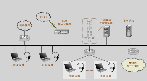 我們可以非常明確的一點(diǎn)是:采用分布式座席的技術(shù),使得遠(yuǎn)端座席與中心座席除了地域上的差異,其它部分完全相同。可以說只要網(wǎng)絡(luò)無極限,座席分布就是無極限的。