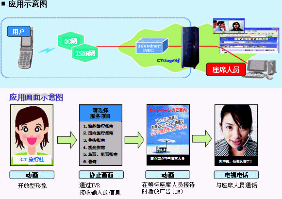 該系統(tǒng)是以O(shè)KI的呼叫中心系統(tǒng)"CTstage®4i"為基礎(chǔ),通過將NEC的視頻解決方案"3GVirdnet®(注1)"與NTTDoCoMo的3G手機"FOMA®"網(wǎng)相連,最終共同構(gòu)成了可靈活運用"FOMA"電視電話的視頻型呼叫中心系統(tǒng)。這也是日本國內(nèi)首次開發(fā)成功的視頻型呼叫中心系統(tǒng)。