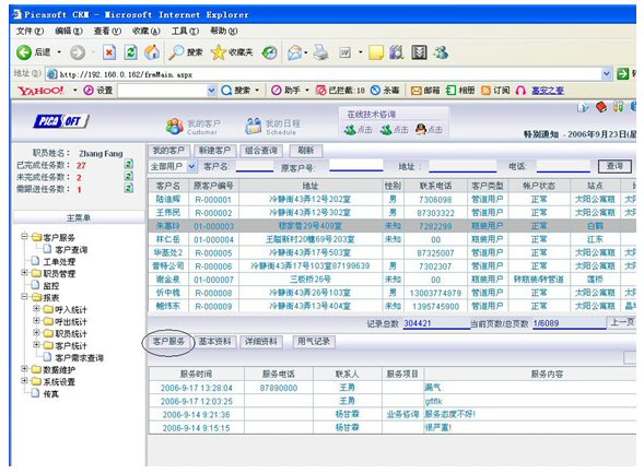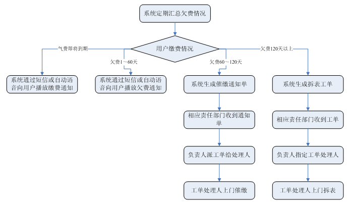 業(yè)務(wù)咨詢:用戶通過(guò)人工、自動(dòng)語(yǔ)音等方式咨詢有關(guān)政策法規(guī)、資費(fèi)標(biāo)準(zhǔn)、用氣常識(shí)、報(bào)裝方法等,系統(tǒng)以語(yǔ)音、傳真、Email、短消息等方式回復(fù)客戶。