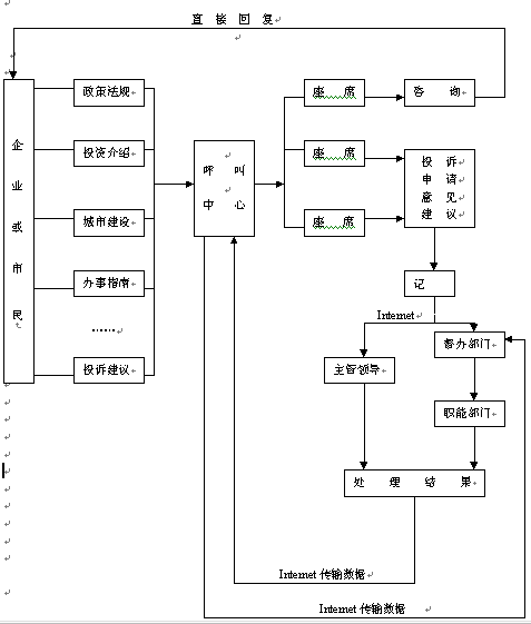 4、投訴、建議的處理信息,通過呼叫中心反饋給領(lǐng)導(dǎo)部門和投訴者。
