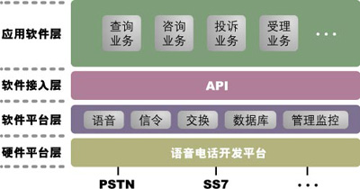 2.系統(tǒng)建設(shè)周期較短,功能擴(kuò)展性強(qiáng)——語音卡方案的主要功能都由軟件編程實(shí)現(xiàn)。國內(nèi)一些語音卡方面的軟件開發(fā)商已經(jīng)積累了語音接續(xù)、排隊(duì)分發(fā)、撥內(nèi)外線、電話會(huì)議、文本傳真轉(zhuǎn)換、文本語音轉(zhuǎn)換等功能模塊,通過簡(jiǎn)單組合10種符合國際規(guī)范的模塊,就可以開發(fā)出滿足用戶需求的各種應(yīng)用系統(tǒng);谕瑯釉,系統(tǒng)開發(fā)新功能也較為容易。