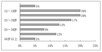 KDDI有關(guān)人士表示:“這個業(yè)務(wù)當(dāng)初是瞄準(zhǔn)30多歲用戶開發(fā)的,但實際上在購買此類手機(jī)的人士中,10多歲或20多歲的年輕用戶占了62%,見圖1。據(jù)本公司以高中生和大學(xué)生為對象實施的調(diào)查結(jié)果顯示,如果音質(zhì)與CD差不多就愿意使用手機(jī)音樂發(fā)行服務(wù)。”chakuutaFull業(yè)務(wù)的特點: