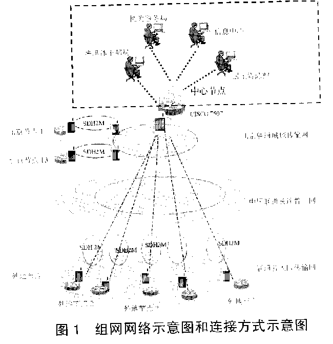 具體接入方式是通過中國聯(lián)通的光纖接入資源,實(shí)現(xiàn)國土資源部全國SDH電路的端到端光纖連接。在北京國土資源部中心節(jié)點(diǎn)引入中國聯(lián)通光傳輸電路,與聯(lián)通北京城域網(wǎng)相連,采用華為622H光傳輸系統(tǒng)設(shè)備的STM一1模塊提供155M光接口,與國土資源部的骨干路由器信道化155M接口相連,由路由器內(nèi)部完成155M到2M的拆分,從而實(shí)現(xiàn)國土資源部和其他節(jié)點(diǎn)2M電路的互連,除可支持目前所需的50個(gè)2M數(shù)字電路的廣域組網(wǎng)(最大支持63個(gè)2MB數(shù)字電路的廣域網(wǎng)).同時(shí)可滿足其將來擴(kuò)容需求,提供多個(gè)l55M接口。其組網(wǎng)網(wǎng)絡(luò)示意圖和連接方式如圖1。