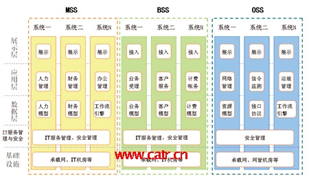 各大運(yùn)營(yíng)企業(yè)基本建成了較為完整的運(yùn)營(yíng)支撐系統(tǒng)的框架體系,功能點(diǎn)覆蓋了企業(yè)運(yùn)營(yíng)管理的各個(gè)方面,有力地支撐了從業(yè)務(wù)運(yùn)營(yíng)、客戶服務(wù)、市場(chǎng)營(yíng)銷到網(wǎng)絡(luò)管理、企業(yè)信息化管理等各項(xiàng)工作。同時(shí),也存在著諸如系統(tǒng)“遍地開花”、功能重疊等現(xiàn)象,這些都需要在今后的建設(shè)工作中逐步解決。