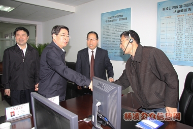 10月29日,陜西省長(zhǎng)袁純清,副省長(zhǎng)、楊凌示范區(qū)管委會(huì)主任姚引良視察呼叫中心,看望慰問(wèn)坐席專家。