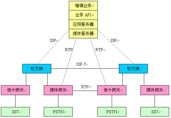 基本的SIP功能和擴展的呼叫控制功能結(jié)合在一起,可使軟交換將呼叫轉(zhuǎn)至應用服務器進行增值業(yè)務處理,處理完以后,應用服務器通過軟交換將呼叫轉(zhuǎn)回,并將自己從呼叫中退出。SIP協(xié)議可使應用服務器進入所有的呼叫控制活動并能傳送﹑重定向和代理呼叫。由于SIP的通用性和靈活性,使得在軟交換網(wǎng)絡(luò)中可以非常有效和容易的實現(xiàn)增值業(yè)務。