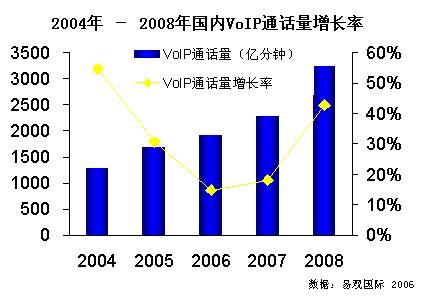 新華美消息:易觀國際《中國 VOIP 市場監(jiān)管政策趨勢預測專題報告2006》中指出,VoIP 是大勢所趨,政策壓制的原因是開放的條件不成熟。一切政策的制定都要遵從一個大前提,即保障公開競爭、維護國家和用戶利益、防止重復建設。2004年-2008年國內(nèi) VoIP 通話量增長率圖下載: