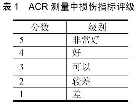 在ACR測(cè)量中,收聽(tīng)者按照從1~5的5級(jí)損傷指標(biāo)對(duì)一系列音頻文件進(jìn)行分級(jí)(見(jiàn)表1)。