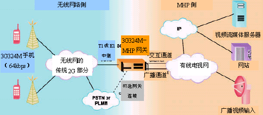 兩個網(wǎng)絡(luò)一旦連通,視頻流就會在兩個方向流動。從網(wǎng)關(guān)流向用戶的視頻流包含有MHP準備好的內(nèi)容,但從用戶流向網(wǎng)關(guān)的任何視頻流都會被丟棄。AMR音頻也會在兩個方向流動