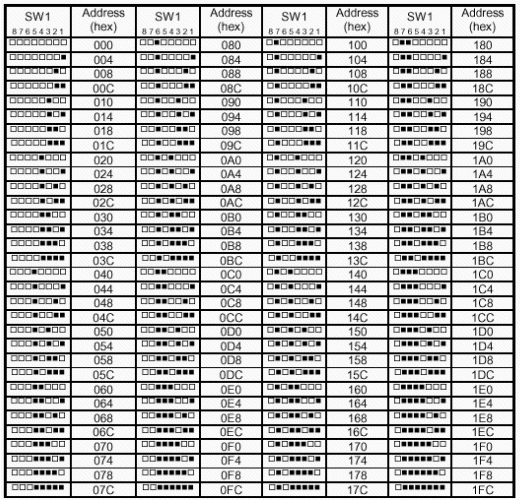 不同的開關(guān)配置對(duì)應(yīng)不同的 I/O 地址,如圖2.2所示。