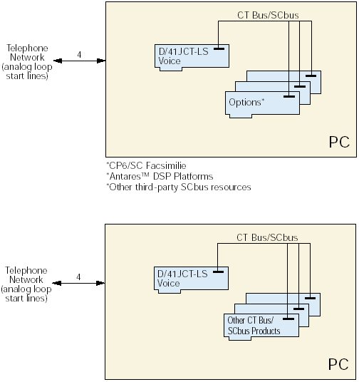 使用D/41JCT-LS板卡開(kāi)發(fā)的復(fù)雜的多媒體通信系統(tǒng)集成了如語(yǔ)音處理、傳真、文本到語(yǔ)音轉(zhuǎn)換等功能。這些板卡與其他SC總線(xiàn)和CT